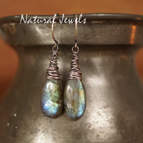 xxx - verkocht - xxx Labradoriet oorbellen zilveren cocon