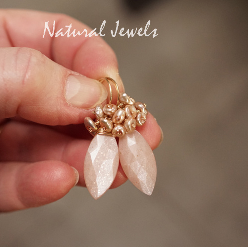 xxx - verkocht - xxx Roze Maansteen cluster oorbellen
