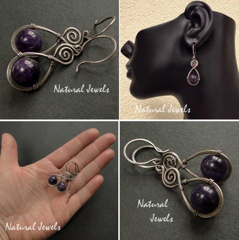 Oorbellen van 925 Sterling zilver met grote ronde kraal van het prachtige paarse Amethist.