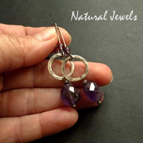 Earrings totally handcrafted from 925 Sterling silver wire and the purple gemstone Amethyst