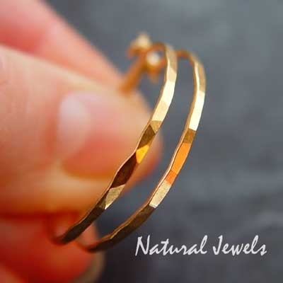 Hoops oftewel oorringen van 14K Goldfill. Het Goldfill is gehamerd, waardoor de facetten zijn gevormd. De facetten geven de oorbellen een schitterende glans.