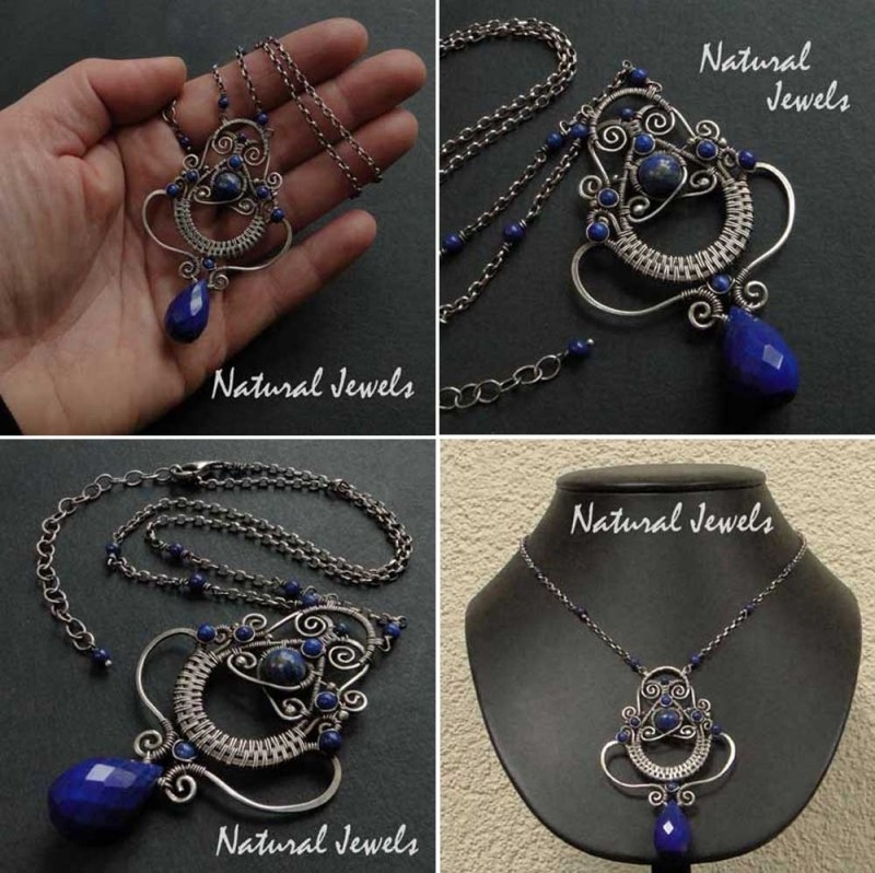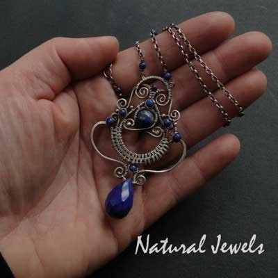 A necklace made of 925 Sterling silver and beads of Lapis Lazuli.