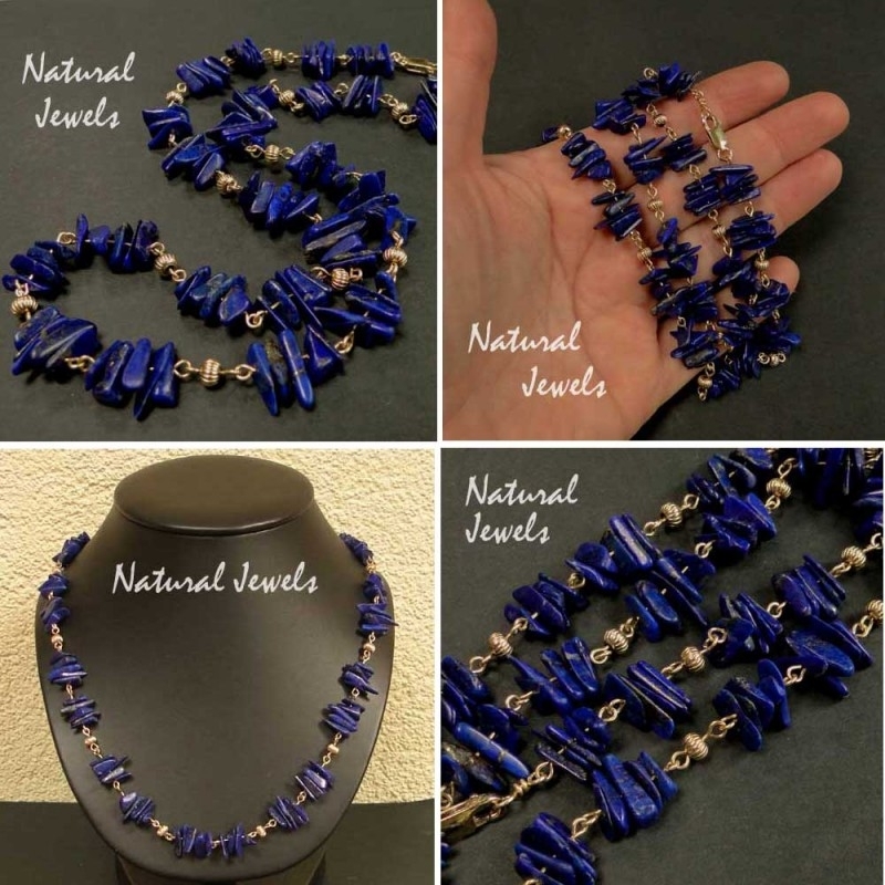 A necklace of 14K Goldfill with chips of Lapis Lazuli.