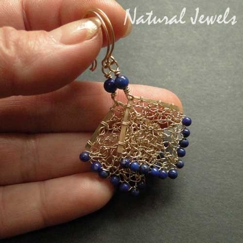 Oorbellen met de hand gemaakt van 14K Goldfill en edelsteentjes naar keuze. De oorbellen op de foto's hebben steentjes van Lapis Lazuli en de kraaltjes die op een rijtje zitten aan de onderkant van de ruit, zijn ietsje kleiner dan het kraaltje vlak onder de oorhaak. Bij alle andere kleuren edelsteen die je kunt uitkiezen (zie onderstaande foto) zullen de kraaltjes allemaal even groot zijn. Bovendien zijn een aantal van deze kraaltjes facetgeslepen.