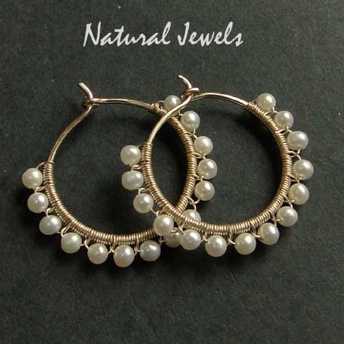 Hoops with 14 small off white potato freshwaterpearls on each earring.