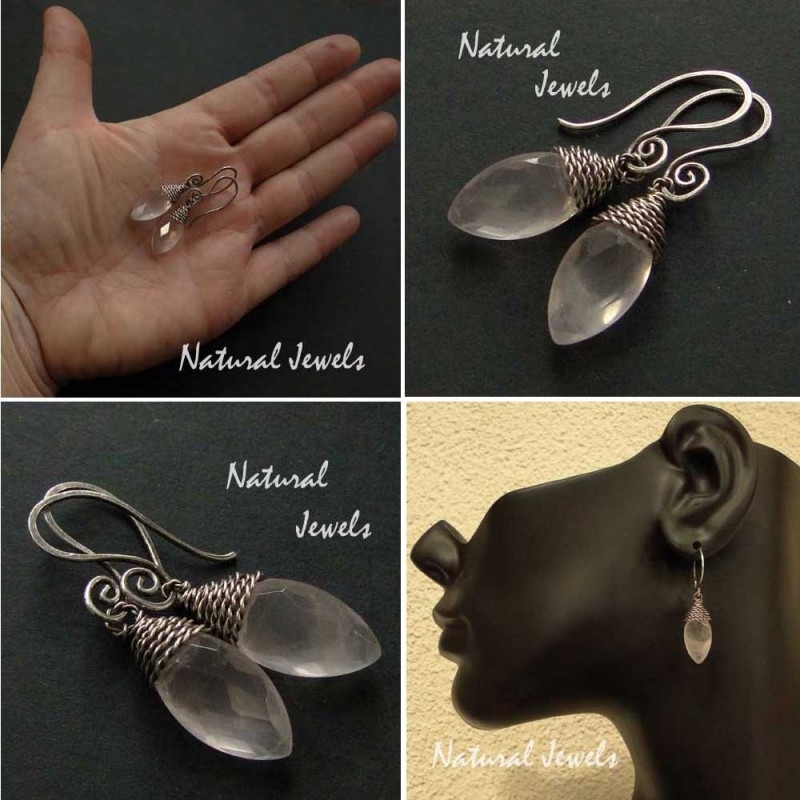 De briolet wordt innig vastgehouden door een gewrapt touwtje van Sterling zilver. De oorhaken hebben een prachtige sierlijke vorm.