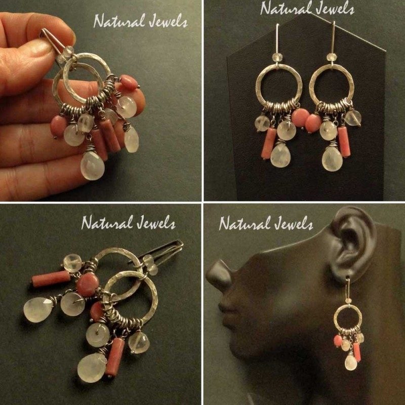 Earrings totally handcrafted from Sterling and Fine silver and gemstones in pink shades.