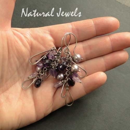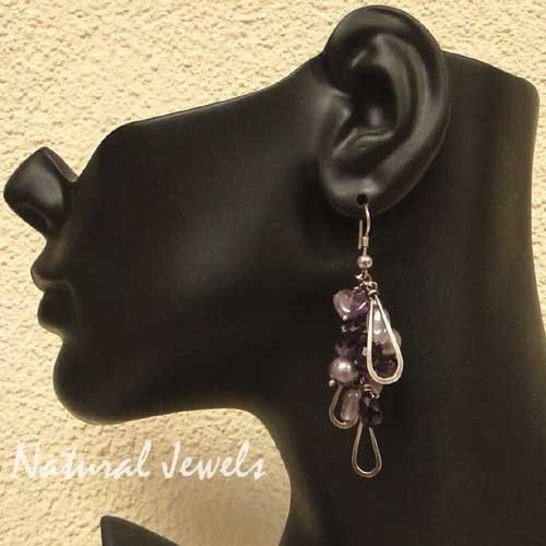Earrings totally handcrafted from 925 Sterling and fine silver wire and beads of Amethyst.