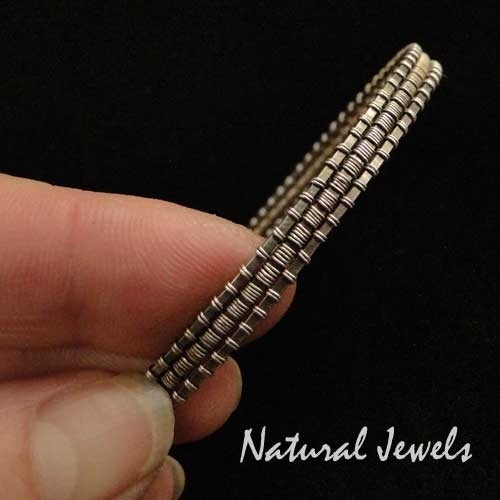 Deze armband is geoxideerd, waardoor het weefwerk extra duidelijk uitkomt.