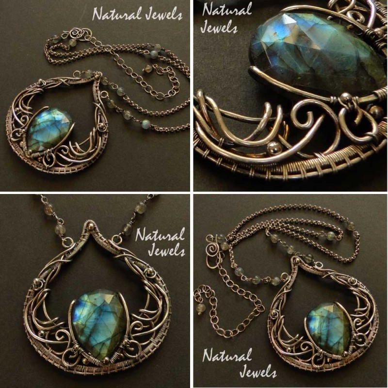 This necklace is made by hand out of wire of Sterling and Fine silver and a facetted briolette of Labradorite.