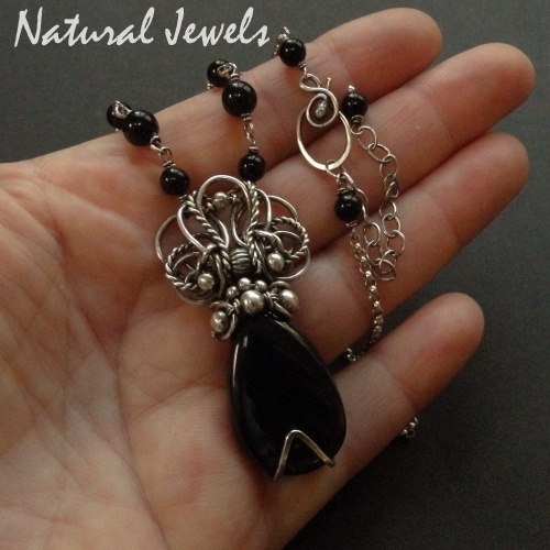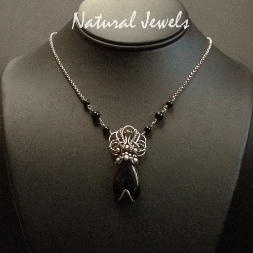 Deze halsketting is met de hand gemaakt van Fijn en Sterling zilver en de edelsteen Onyx.