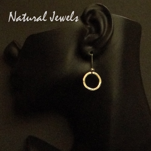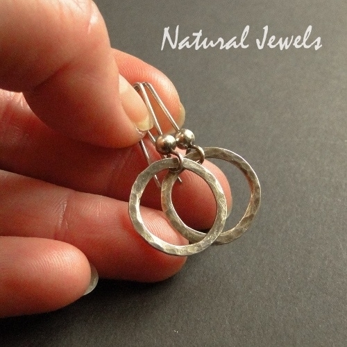 Handgehamerde oorringen aan een stoere Natural Jewels oorhaak. Basic, voor alledag en bij iedere outfit. Verkrijgbaar in 5 verschillende afmetingen.