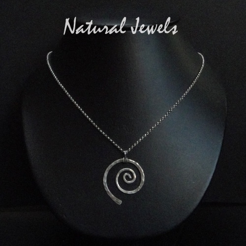 The spiral is formed by hand out of wire of Sterling silver, it has been hammered, oxidized and lightly polished. This piece of jewelry has a lot of strength, coming from the ancient symbol of Grow and Eternity.