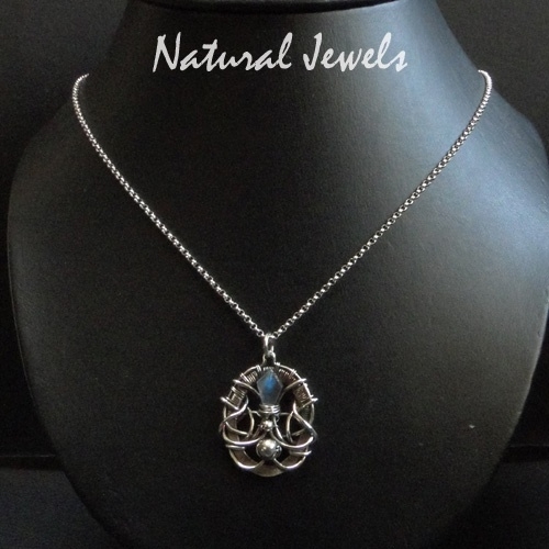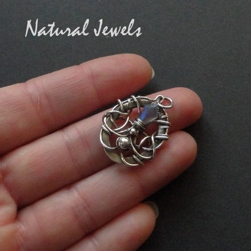 For everybody who loves small pieces of jewerly. The briolet of Labradorite has a blue flash and the silver lines are playing around it. The shape of this briolette is called tie.