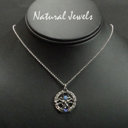 A small and unique handmade pendant of Sterling and Fine silver. The facetted briolette is made of the brightblue gemstone Kyanite, the rondelle is blue Agath.