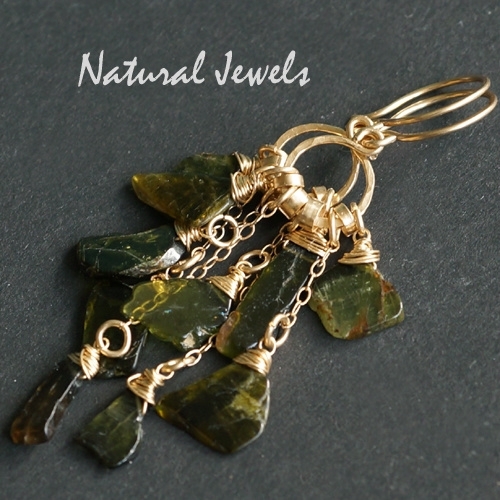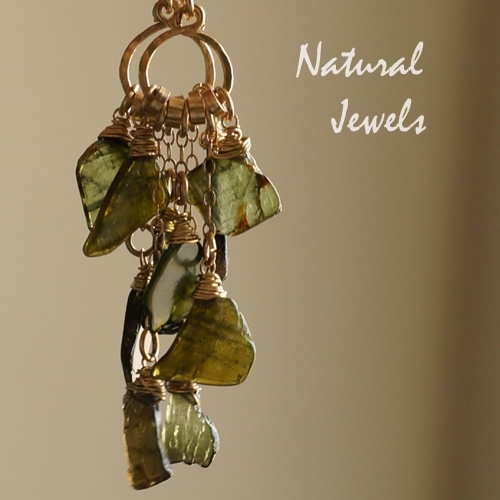Deze tere schijfjes van Tourmalijn zijn zo mooi, dat ik niet goed wist hoe ik ze het beste kon verwerken in een sieraad. Zo puur en prachtig, ze hebben niks anders nodig dan zichzelf. De oplossing is dan zo eenvoudig mogelijk, een dun Goldfilled draadje erom en aan kleine stukjes ketting die aan een cirkel hangen. De kleuren van de halfedelsteen zijn lastig op de foto te vangen, maar ze zijn ook erg verschillend. Dus boeiend. Erg mooi.