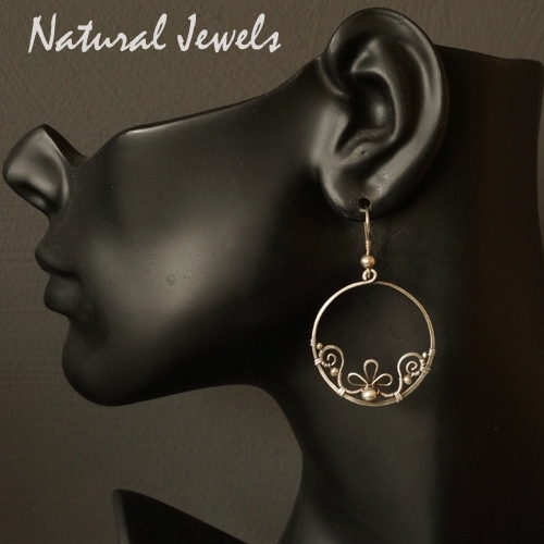 Deze oorbellen waren er al in de vorm van een oorring, maar nu ook als oorbel met een oorhaak. Een sierlijk ornamentje is met een hele dunne zilveren draad vastgezet in een cirkel van zilver. Wat kraaltjes van zilveren maken het ontwerp compleet.
