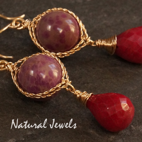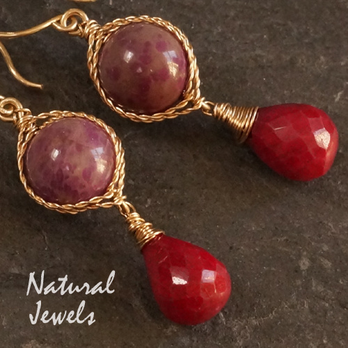 xxx - verkocht xxx Goldfilled earrings Sugilite and Ruby