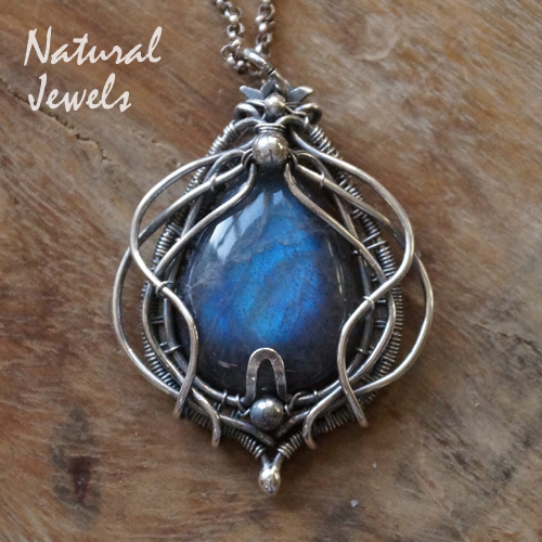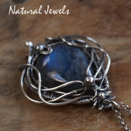 Een met de hand gemaakte zilver hanger met een cabuchon van Labradoriet. De steen heeft een mooie diepblauwe glans. Ik heb de zilveren lijnen eromheen vrij rustig gehouden, een paar kraaltjes van zilver maken het ontwerp compleet. De hanger heeft een middenmaatje, de hoogte inclusief het ophangoogje is 4 cm.