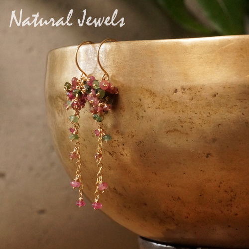 Oorbelletjes van facetgeslepen rondelletjes van Watermeloentoermalijn, gemaakt op verzoek. Zonder de oorhaken, want ze komen aan 14K Goldfilled hoops te hangen en dat lijkt me heel mooi. Heel veel mini-mini-kleine steentjes heb ik allemaal op een handgemaakt pinnetje gezet. Bovenin een cluster en vandaaruit een dun schakelkettinkje met nog een aantal Watermeloentoermalijntjes eraan. Heel puur natuur, heel kleurrijk en vrouwelijk, fijntjes en zacht.