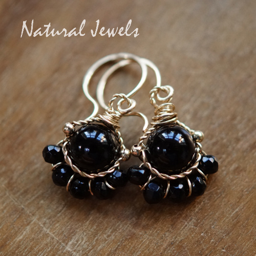 Oorbellen van 14K Goldfill met Zwarte Onyx. Prachtige handgemaakte oorbellen, vrolijk en heerlijk speels.