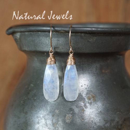 14K Goldfilled oorbellen met Maansteen. Deze Maansteen brioletten zijn veel langer dan de andere stenen in mijn assortiment. Eigenlijk wilde ik ze bewaren voor hangers, maar dit is toch ook wel heel erg mooi dus toch..... De stenen zijn facetgeslepen en de kleur van de glans is indigoblauw en deze stenen zijn iets dikker dan de andere die in het snoer zaten. Ze zijn gedeeltelijk transparant en gedeeltelijk wolkerig en ze zijn niet helemaal gelijk van grootte. Je kunt ze ook bestellen met andere oorhaken als je wilt. Prachtige Maansteen oorbellen van hoge kwaliteit met een schitterende blauwe glans.